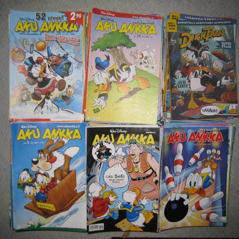 Iso määrä Aku Ankka -sarjakuvalehtiä. Kansioissa vuosikerrat 2001-2004 sekä 2012. Irtolehdet vuosilta 1998 - 2016. Joukossa voi olla joku täysikin vuosikerta, mutta enimmäkseen vajaita. VAIN NOUTO.
