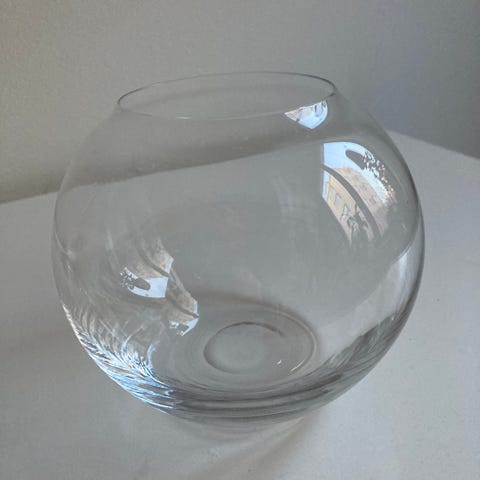Lasikulho, tilavuus piripintaan 3,6l, korkeus 16cm. Siisti. Nouto Espoo Kalajärvi (tai Leppävaara arkisin klo 11-12), postitus tai toridiili.
