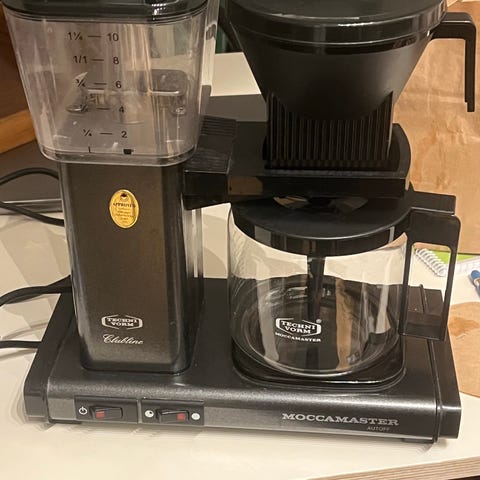 Vähän elämää nähnyt ja lasikannu pinttynyt, mutta edelleen tekee hyvät kahvit :)