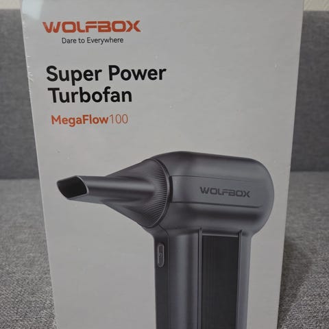 Markkinoiden tehokkain puhallin! Wolfbox MegaFlow100 Super Power Turbofan on monikäyttöinen puhallin, joka soveltuu esimerkiksi tietokoneen ja elektroniikan puhdistamiseen, ilmalelujen täyttämiseen ja tehoa riittää niin paljon, että voi käyttää melkein lehtipuhaltimena.