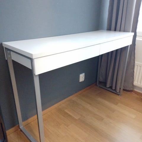 Ruskea työpöytä jäänyt käyttömättömäksi. Haku tervalammelta, Vihti.
