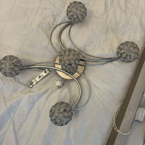 Myydään näyttävä musta kattovalaisin. Hopeinen koriste yläpuolella. Hyvässä kunnossa. Halkaisija noin 50cm. Vain haku.