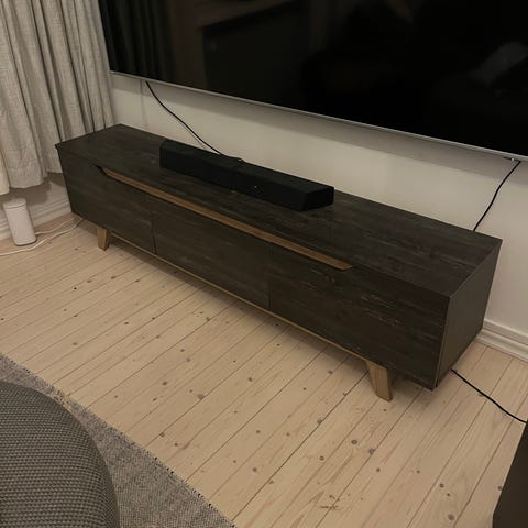 Retro tv pöytä. Malli on matala ja sopii hyvin myös muuhunkin käyttötarkoitukseen. Mitat suuntaa antavia, eli voi olla parin sentin heitto.