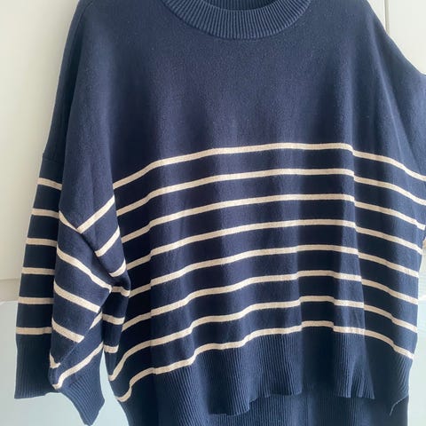 Tyylikäs pitkä neulepusero sivussa olevilla halkioilla.