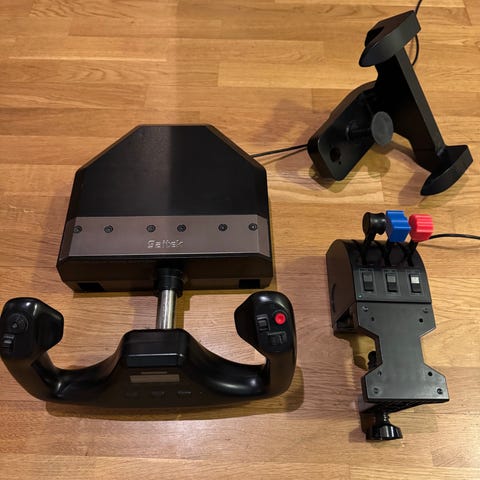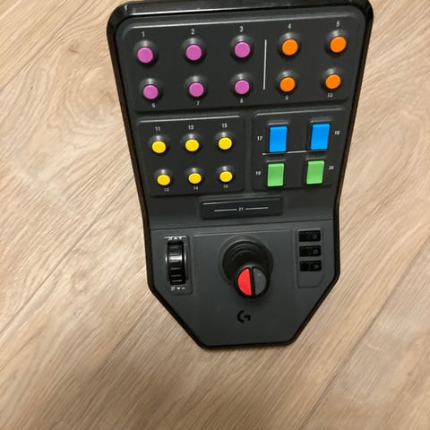 Logitech Side Panel Control Deck ohjainpaneeli tietokoneelle. Laitteessa on useita ohjelmoitavia painikkeita ja kytkimiä sekä ohjaussauva ja rulla. Yhteys tietokoneeseen tapahtuu USB-johdolla. Sopii esimerkiksi ajosimulaattoreiden ja työkonesimulaattoreiden lisäohjaimeksi, kun tarvitaan erillinen paneeli eri toimintojen hallintaan.
