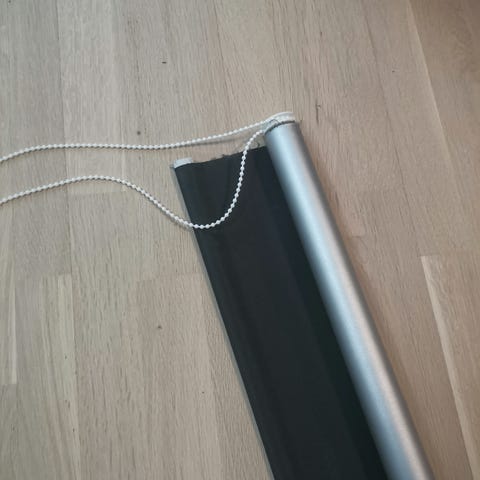 Myydään hyvin pimentävä harmaa pimennysrullaverho. Leveys kiinnikkeiden kanssa 140cm ja verhon leveys 135,5cm.