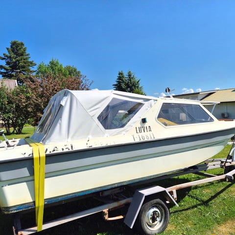 Uusi kuvan mukainen kuomu, poiketen että sivu ja takaikkunoin. Kiinnitys kaavan mukaan. Edelleen talvihintaan