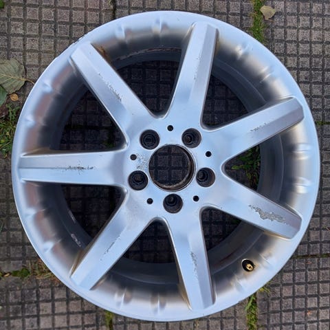 Ulospäin siistit vanteet. 3 lievästi kieroa ja yksi suora vanne. Korjattavissa oikaisemalla. Romualumiinin hinnalla Uniwheels M10707 ET 48,5