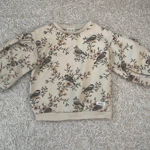 Lähes uudenveroinen Newbien siniharmaa farmi/traktori-aiheinen collegepusero.