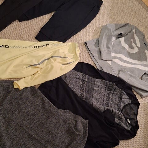 Kasa vähälle käytölle jäänyttä treenivaatetta salille tai muuhun urheiluun ja vapaa-aikaan;