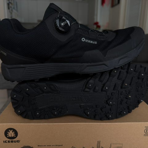 Myydään hyväkuntoiset ja Icebug NewRun M BUGrip GTX -nastajuoksukengät miehille. Kengissä on musta päällinen, jossa keltaisia yksityiskohtia. Päällinen on Gore-Tex-kalvolla varustettu, joka auttaa pitämään jalat kuivina. Pohjassa on nastoitus ja kuvioitu kumipohja, joka on suunniteltu liukkaisiin ja vaihteleviin keliolosuhteisiin. Kengissä on pikakiinnitysnauhat BOA-säätörullalla helppoa kiristämistä ja löysäämistä varten. Koko on 41,5. Malli on normaali, joten ne eivät sovellu leveälestiseen jalkaan. Tästä hyvät kengät juoksuun ja muuhun talviseen ulkoliikuntaan vaihtelevilla alustoilla.