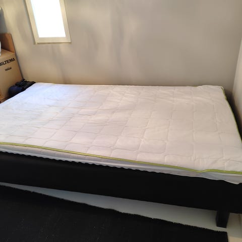 Myydään tilanpuutteen vuoksi siisti ja hyvä tummansininen runkopatja sekä vaalea paksu petauspatja. Sänky on ollut aina sisällä ja käytössä vierasvuoteena harvoin. Petauspatjan päällinen on tikattu ja irrotettavissa. Käytetty aina lisäksi petauspatjan suojusta petauspatjan päällä ja runkopatjan suojana on ollut ”reunuslakana”.