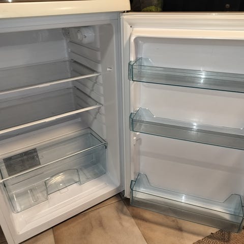 Myydään kuvan jääkaappi. Ollut käytössä hallin kahvihuoneessa. Tahroja on, siivous jää ostajalle.