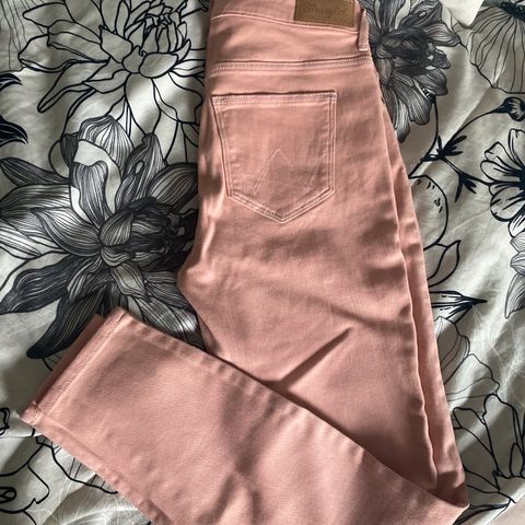 Wranglerin vanhat, mutta hyväkuntoiset violetit farkut. Materiaali 100% puuvillaa. Vyötärön ympärys 70 cm, eli vastaa kokoa S/36.