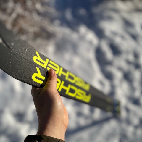 Toisen suksen reunassa pieni kolhu (näkyy kuvassa)