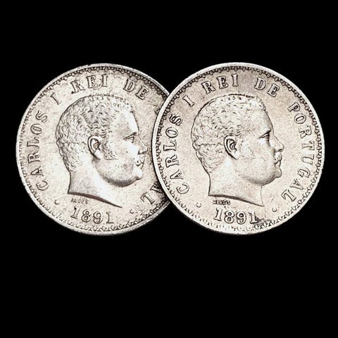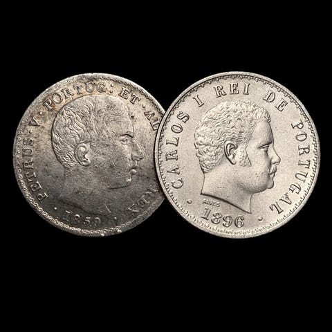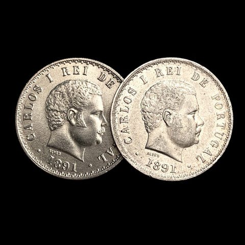 2 x 500 Réis - Kaarle I - 18911891-1908Kolikot › yleisesti kiertävät kolikotPrata 917‰ • 12,5 g • ⌀ 30,59 mmKM# 535, Gomes# C1 11, N# 13025500 réis - Manuel II-19081908-1909Kolikot › yleisesti kiertävät kolikotHopea 835‰ • 12,5 g • ⌀ 30 mmKM# 547, Gomes# E2 04, N# 25346