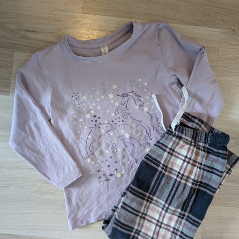 Suloinen ja laadukas karhupyjama, värit hiukan haalistuneet pesussa, mutta ehjä ja siisti