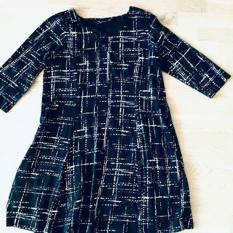 Hyväkuntoinen, muutamia kertoja käytetty mekko. Väljä helma. Materiaali polyester/elastaani. Kai-kai 51 cm olka-helma n. 89 cm.