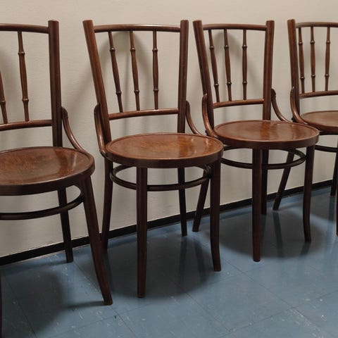 2 vintage wieniläistuolia Thonet Radomsko. Tarra säilynyt yhdessä tuolissa.
