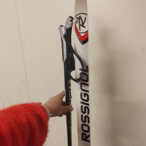 Atomic Sport 46 maastohiihtosukset siteillä. Suksissa on sininen, valkoinen ja punainen väritys sekä pohjassa tasainen musta pohjamateriaali. Suksissa on valmiiksi asennetut siteet, jotka sopivat perinteisen maastohiihtomonon kiinnitykseen. Soveltuvat perinteisen tyylin hiihtoon ladulla.