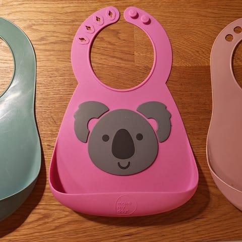 2 Done by deere silikonisia ruokalappuja+ 1 äitiyspakkauksesta tullut, sekä 1 silikoninem Liewood ensilusikka, jolla hyvä harjoitella lusikan käyttöä. Hinta koko setille.