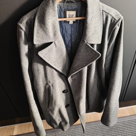 COS miesten villakangastakki, koko M, musta. Hupullinen malli. Satiiniset hihat.