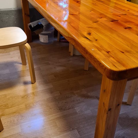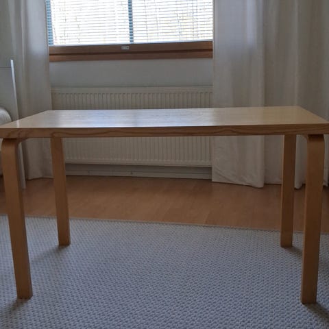 Artek 81b pöytälevy (120x75 cm). Pöytätaso on sileäpintainen ja sopii esimerkiksi työ- tai ruokapöydäksi. Kunto todella hyvä, jotain pieniä käytön merkkejä näkyy jos oikein lähelle menee.
