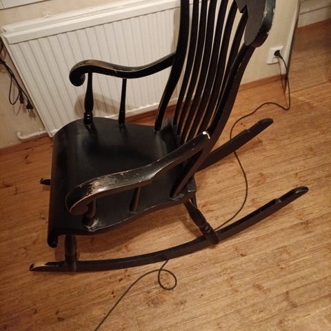 Myydään 70-luvulta peräisin oleva säädettävä keinutuoli. Koiranpentu on jäystänyt toista jalasta. Tuolin saa purettua osiin ja kuljetettua henkilöautossa.