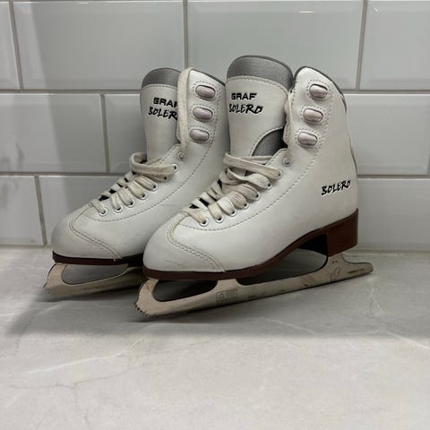 Uudet Graf Victoria taitoluistimet, koko 37. Väri valkoinen. Perinteinen korkeavartinen malli, jossa nauhakiinnitys ja tukevat kannat. Terät soveltuvat taitoluisteluun ja muuhun harrasteluisteluun. Pehmustettu varsi lisää käyttömukavuutta. Kenkäosa synteettistä materiaalia, helppo pitää puhtaana. Sopii nuorelle tai pienijalkaiselle aikuiselle luistelijalle, joka tarvitsee koon 37 luistimia.