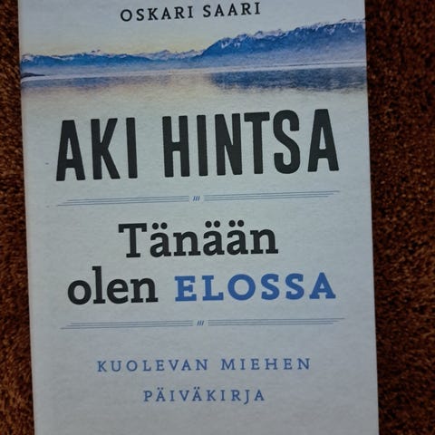 Oskari Saaren kirjoittama kirja "Aki Hintsa – Tänään olen elossa: kuolevan miehen päiväkirja". Kovakantinen teos, suomenkielinen.