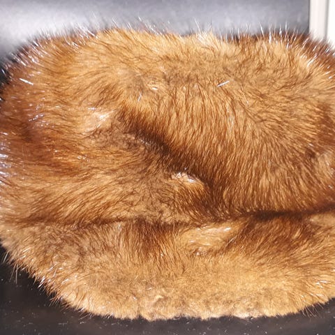 Mummin lakki. Turkistukku Oy:n tuote Helsingistä. Sisä ympäryysmitta 55 cm