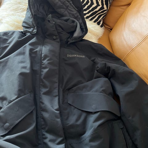 Didriksons naisten ulkotakki, koko L. Väri beige. Sateen pitävä talvitakki, sileä ulkopinta ja tikattu vuori. Takissa on kiinteä huppu, korkea kaulus ja etuvetoketju, jonka päällä on neppareilla suljettava tuulilista. Edessä suuret läppätaskut sekä vetoketjutaskut. Hihansuissa tarrakiristys. Kivoja yksityiskohtia mm, kännykän johdolle. Pituus reiden puoliväliin, malli suojaa hyvin ylävartaloa ja lantiota. Soveltuu naisten arki- ja ulkoilukäyttöön viileämpiin säihin. Käytetty max 5 kertaa. Koko 40. Ostettu uutena urheilukaupasta.