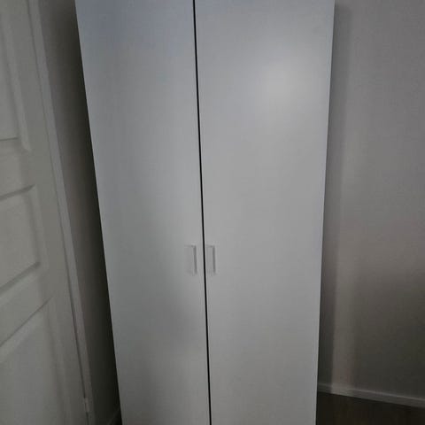 Jyskin lastulevy vaatekaappi. Kaksi vuotta vanha. Ollut vähällä käytöllä, mutta muuton yhteydessä aiheutunut kulumia erityisesti reunoihin (katso kuvat). Yleisilme kuitenkin siisti. Kaappi on painava ja tukeva. Voimme yhdellä henkilöllä avustaa kaapin kannossa autolle.