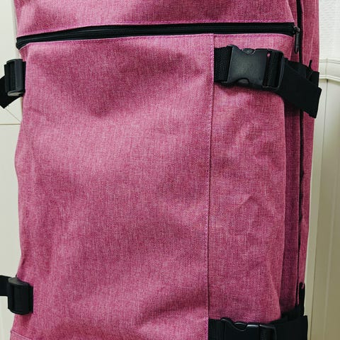 Sisäosassa molemmilla puolilla omat vetoketjulla suljettavat osiot ja toisessa osiossa lisäksi kiinnitys remmit.
