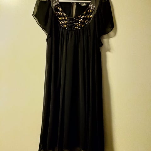 Musta yläosa ja harmaa ala-osa. Hyvännäköinen päällä, kuin hame ja paita, mutta ne on yhtenä mekkona.