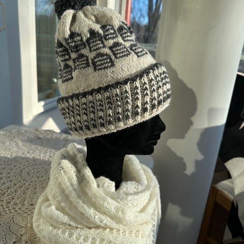 - villapipo. Kirjava raidallinen malli, jossa vaaleaa, tummia sävyjä ja tehosteväriä. Materiaali villaa. Koko one size, sopii useimmille aikuisille. Soveltuu arkeen ja ulkoiluun viileään säähän.