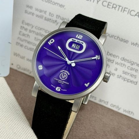 Upea miesten rannekello Stefano Braga:n Eos-sarjasta, mallinumeroltaan ÈOS1000N-BU. Kello toimii kvartsikoneistolla (Swiss made Ronda 503) ja siinä on myös silmiinpistävä keskiosan käsittely kellotaulussa. Ehdottomasti huomiota herättävä näky kirkkaanvärisen kellotaulun ansiosta. Luettavissa hyvin kontrastin ansiosta viisarien ja indeksien välillä.Uusi ja käyttämätön!Kello on yhteensopivassa nahkarannekkeessa.Toimitetaan näytetyillä (valkoisilla) tarvikkeilla.Kellokoneisto: Kvartsimateriaalikast: teräs (Diamond light carbon)halkaisija: noin 40 mm pois lukien kruunu.dikte; noin 10 mmHihnan pituus: noin 20 cm, mukaan lukien kello.Ikä: 2020+Se lähetetään vakuutettuna.Valokuvien ottaminen on osa kuvausta.