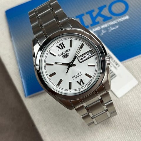 Upea ja laadukas Seiko-kello, referenssinumerolla SNKP21J1, Seiko 5 -sarjasta. Kellossa on automaattinen koneisto (Seiko Caliber 7S26) ja se on varustettu näyttävällä arabialaisella numerotaululla. Lisäksi kellossa on päivämäärä/näyttö kahdella kielellä (arabia/englanti) klo 3 kohdalla. Kellon kruunu on sijoitettu klo 3 kohdalle.Uusi ja käyttämätön!Kello sijaitsee teräksisessä kotelossa ja toimitetaan siihen kuuluvalla teräksisellä rannekkeella.Toimitetaan mukaan lukien kotelo ja leimatuiksi asiakirjoiksi.Uurwerk: automaattinen (Seiko Caliber 7S26)materiaali: teräshalkaisija: noin 42 mm ilman kruunuakastdikte: noin 12 mmlasit: HardlexKoko nauha: noin 22 cm, sisältäen kellon.Ikä: 2024Se lähetetään vakuutettuna.Valokuvien ottaminen on osa kuvausta.