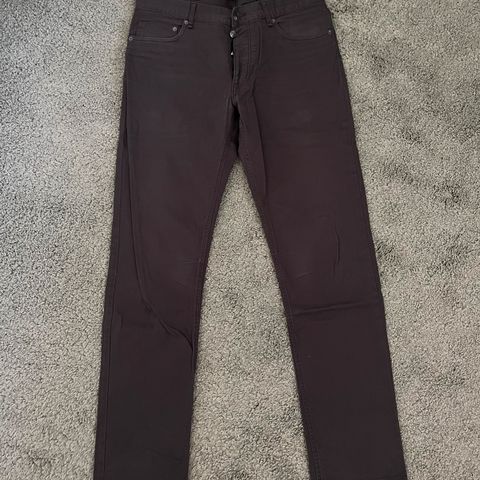 Myydään hyväkuntoiset ja tyylikkäät miesten kapeamalliset (slim fit) farkut. Värinä trendikäs pesty harmaa/musta, joka on helppo yhdistää eri asuihin. Farkuissa on klassinen viiden taskun muotoilu ja laadukas viimeistely. Materiaali on miellyttävää ja joustavaa denim-kangasta, joka takaa hyvän istuvuuden.