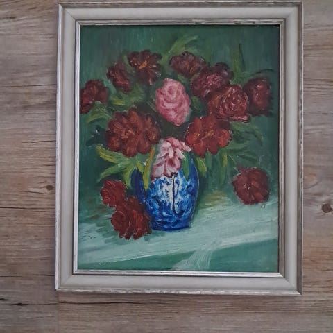 Myydään erittäin siisti ja hyväkuntoinen kukkataulu 80-luvulta. Koko 49x59cm.
