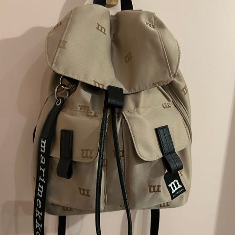 Tilava L-kokoinen reppu m-logolla. Vähän käytetty, puhdas ja ehjä.