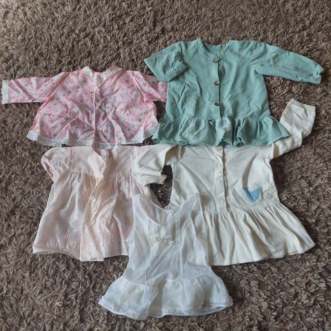 70-80-lukujen tytön vaatteita. Muutama kokoa 70, siitä ylöspäin 90 asti.