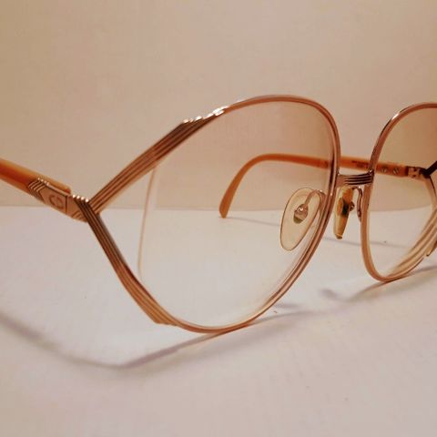 Christian Dior naisten silmälasit kullanvärisellä metallikehyksellä. Kehys on ohut ja neliömäinen, ja sangoissa on koristeellinen yksityiskohta sekä Dior-logo. Linssit ovat kevyesti sävytetyt. Sopivat optikolla hiottaville vahvuuksille tai vaihdettaviksi omiin linsseihin. Naisten malli. Leimat löytyy.