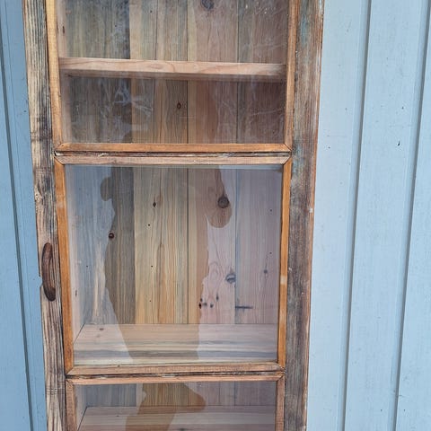 2x Puinen vitriinikaappi / hyllykkö 70–80-luvulta
