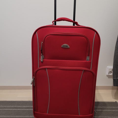 Pyörät, kahva ja vetoketjut toimii, siisti päältä ja sisältä. Korkeus 55, leveys 35 ja syvyys 21.Kulkeutuu omien menojen mukana Tampere keskusta, Ylöjärvi, Länsi-Tampere, Nokia, Häijää, Kiurala, Kutala alueille.