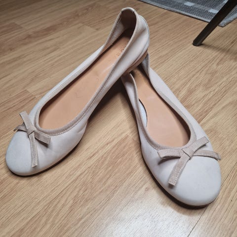 Metsänvihreät, nahkaiset Fiona-ballerinat, koko 37. Vastaa kokonumeroa: omaan 37,5-38 -kokoiseen jalkaani ovat valitettavasti vähän pienet. Kengät voi pukea myös kanta alas taitettuna.