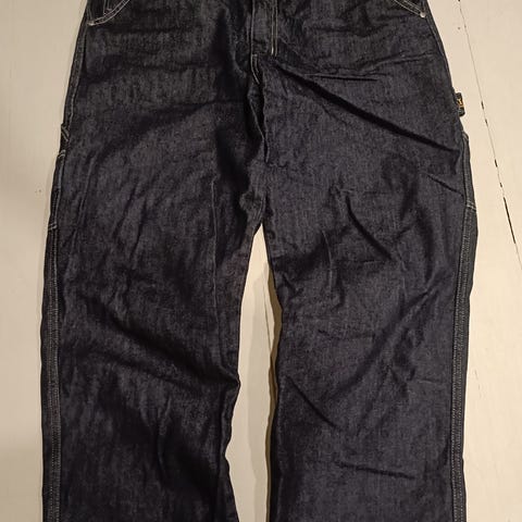 Farkut ovat käytetyt ja niissä on pientä käytön jälkeä / vaaleaa tahraa (näkyy kuvissa), mutta muuten hyväkuntoiset ja täysin käyttökelpoiset. Sopivat hyvin arkikäyttöön tai street-tyyliin.