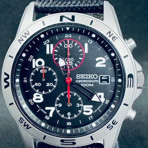 KuvausKotelon koko: 38 mm (läpimitta ilman kruunua) x 45 mm (luggista luggin).Kellotaulu: musta taulu, jossa valkoiset indeksit ja osoittimet.Päivä/päivämäärä: Quickset toimiiKristalli: Lasi; muutama naarmuRanneke: SeikoLiittimen leveys: 20 mmPituus mukaan lukien kellon pää: 19 cm.Palveluhistoria: TuntematonVakuutettu lähetys seuraavien kanavien kautta:Paikallinen toimitus: Paikallinen kirjattu postiKansainvälinen lähetys: DHL ExpressTÄRKEITÄ HUOMIOITAVIA SEIKOJA!! HUOMIOI ENNEN HUUTAMISTA!!Kello myydään sellaisenaan. Ellei toisin mainita, takuuta ei myönnetä eikä kellon tarkkuuden, vedenkestävyyden jne. vaatimuksia hyväksytä tai käsitellä.2. Ostaja on vastuussa kunkin maan veroviranomaisten mahdollisesti määräämistä tulli- ja/tai arvonlisäveroista. Tarkista siis epävarmat asiat asianmukaisilta viranomaisilta ja tee tarjous sen mukaisesti. Jos ostaja ei vastaanota toimitusta maksamatta jääneiden verojen vuoksi, ostaja on silti vastuussa kaikista toimitus-, tulliselvitys- ja muista hallintokuluista.3. Jos ostaja peruuttaa tilauksen toimituksen jälkeen, ostaja on vastuussa kaikista palautuskuluista, hallinto- ja tullimaksuista, jotka aiheutuvat kellon palauttamisesta ja uudelleentuonnista.4. Kansainvälinen transit (pois lukien tullaus ja viimeinen maili -toimitus) kestää yleensä enintään 2 viikkoa, mutta voi kestää pidempään riippuen maasta ja paikasta, julkisista vapaapäivistä, Ukrainan sodasta, globaalista pandemiatilanteesta ja niin edelleen.5. Huomioithan myös, että meillä ei ole vaikutusvaltaa tai määräysvaltaa siihen, kuinka nopeasti kunkin maan tulliviranomainen käsittelee paketin sen saapuessa maahanne. Siksi tarkista asia tulliviranomaiselta/postipalvelulta, kun lähetys saapuu maahanne.