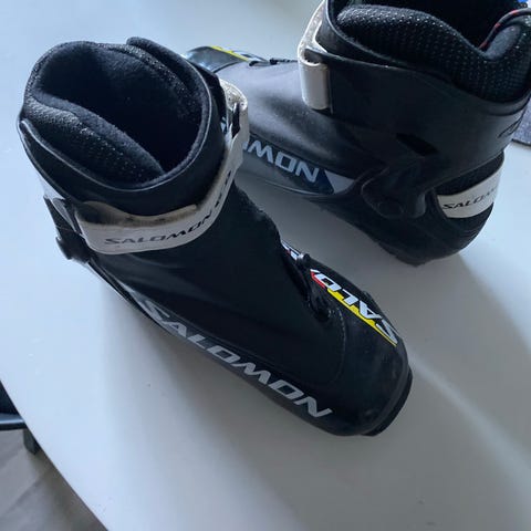 Salomon luisteluhiihtomonot. Monossa on nauhakiristys ja vetoketjulla suljettava suojaläppä. Pohja on yhteensopiva Salomon-siteiden kanssa (SNS-tyyppinen pohja).