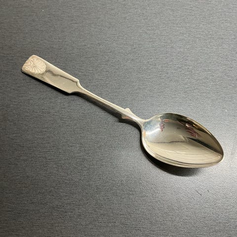 Musla jälkiruokalusikoita 5 kpl ja yksi liemikauha